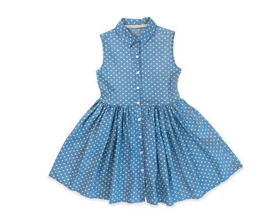 Kids Padded Blue polka dot dress sleeveless for girls